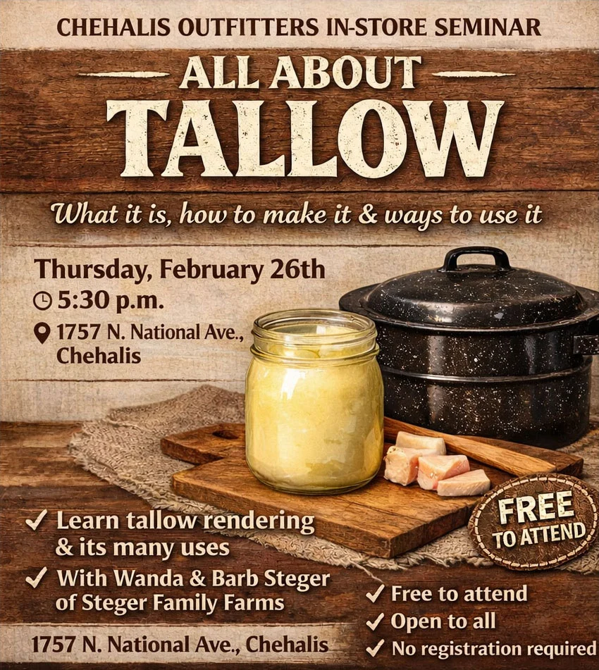 Join us for a fun and informative in-store seminar with Wanda and Barb Steger of Steger Family Farms as they break down everything you’ve ever wanted to know about tallow. From kitchen to skincare, this traditional staple is making a big comeback!